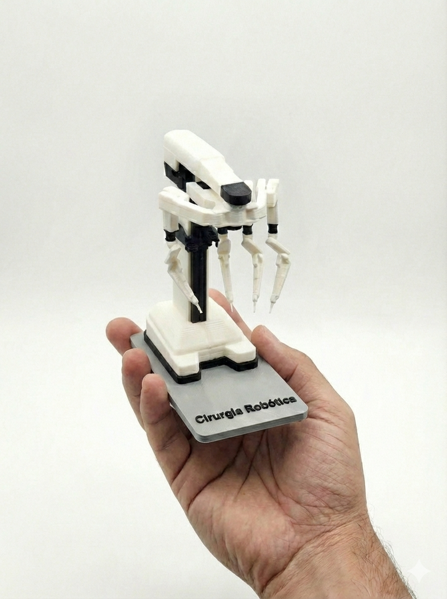 Base do Robô cinza escrito “Cirurgia Robótica”.